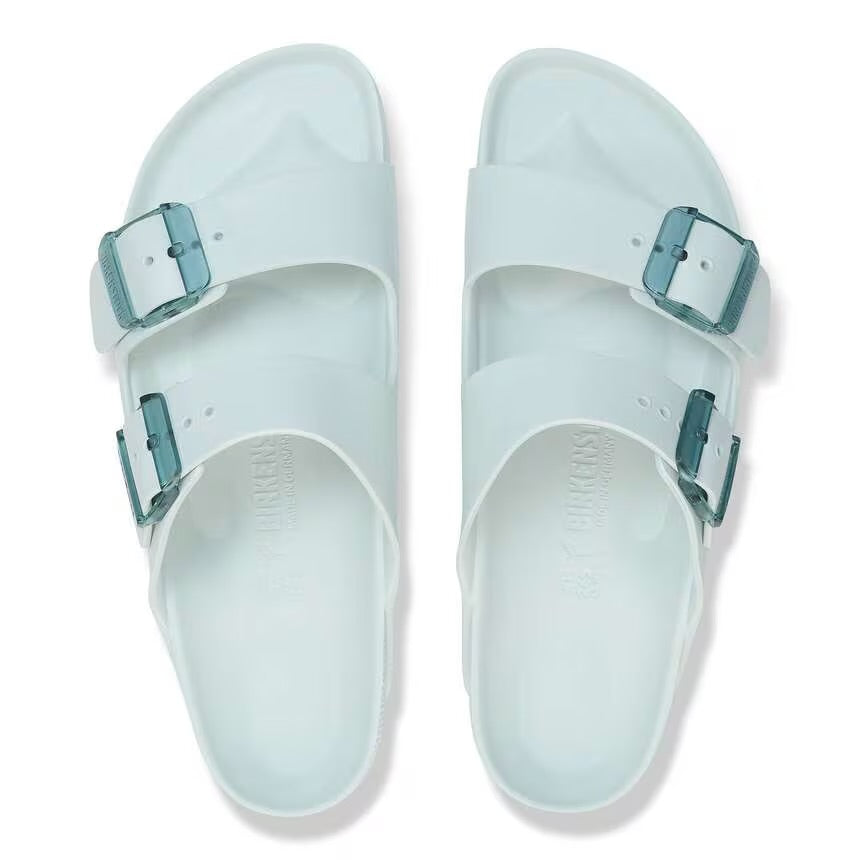 Birkenstock Arizona Stealth Buckle EVA in surf green.