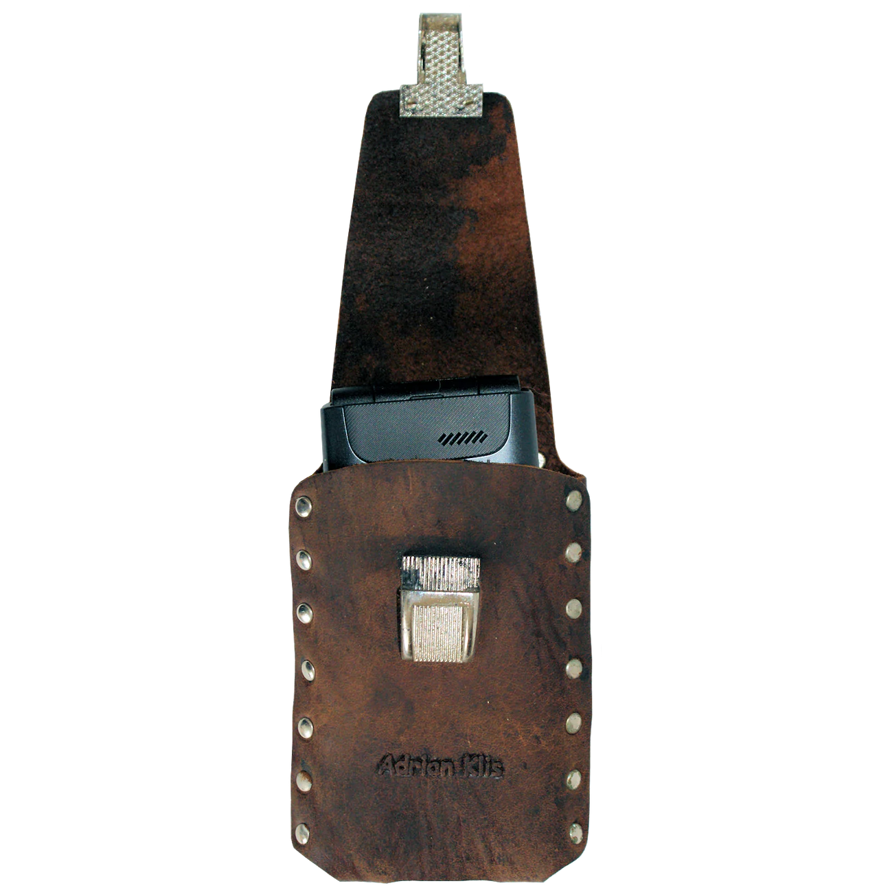 Canada Leathers Flip Phone Holder #SM1 in brown leather.